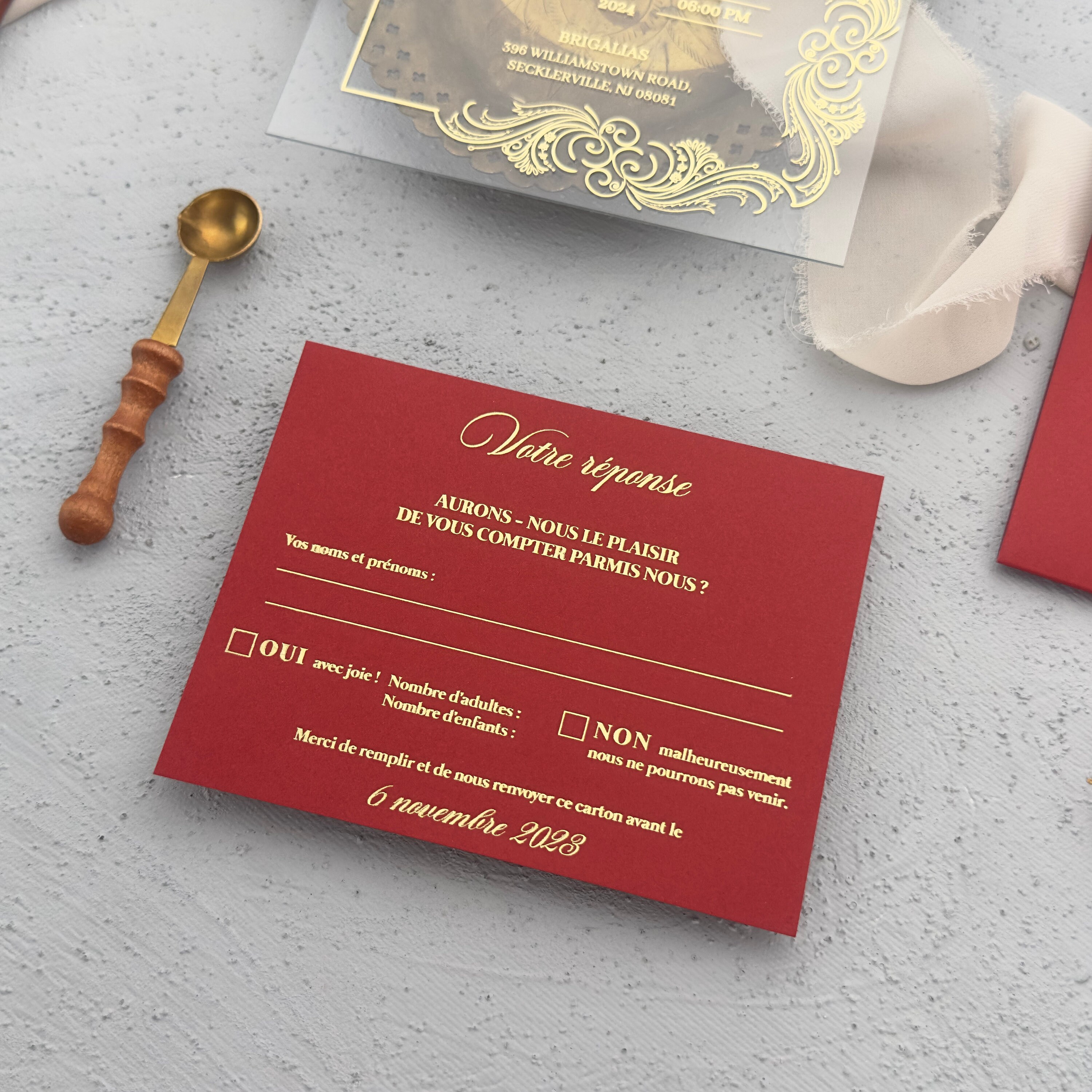 Acrylic Wedding Invitation With Burgundy Trifold Envelope Etsy