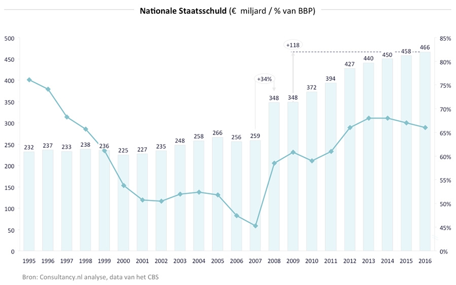 Nationale Staatsschuld bijna verdubbeld sinds economische crisis